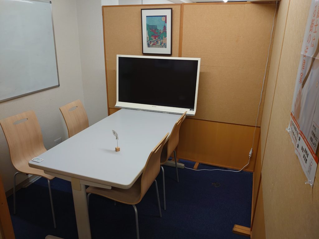 打ち合わせスペースはこのようになっています。ホワイトボードもあり、要点を整理しながらの打合せも行いやすいです。